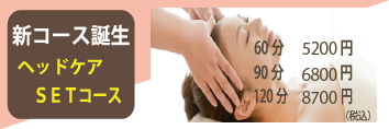 | 【新コース誕生】 ヘッドケアSETコース(もみほぐし+ドライヘッドスパ) ☆見込効能☆ 頭が軽くなる爽快感!眼精疲労の改善、睡眠の質向上 |